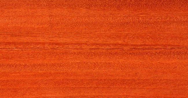 Freshly sawn Kotibé has a reddish brown color, darkening after exposure to deep red brown (Mahogany-brown). The structure is rather uniform and there is no clear pattern. The 20-50 mm thick sapwood has a light brown color, with a pinkish tint. It is easy to distinguish from the heartwood. Kotibé contains a white constituent. The wood grain is irregular and interlocked. The texture is medium coarse.