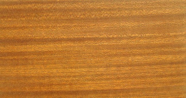 Le Sapeli, brun rose juste après avoir été scié, fonce après exposition au brun rouge profond. Le duramen présente souvent une belle teinte dorée. Après la coupe, le Sapeli dégage une odeur de cèdre. L'aubier, de 60 à 80 mm d'épaisseur, est facile à distinguer avec sa couleur rose gris à jaune. La structure du bois est droite à irrégulière et souvent imbriquée, ce qui produit un beau motif de rayures régulières sur le plan radial. La texture est moyennement grossière.