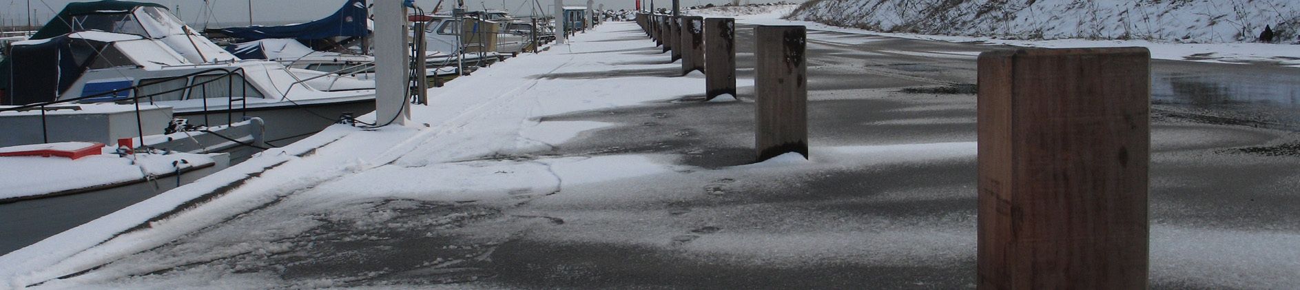 Pieux d'amarrage du pont dans le port de Kastrup, Copenhague (Danemark)