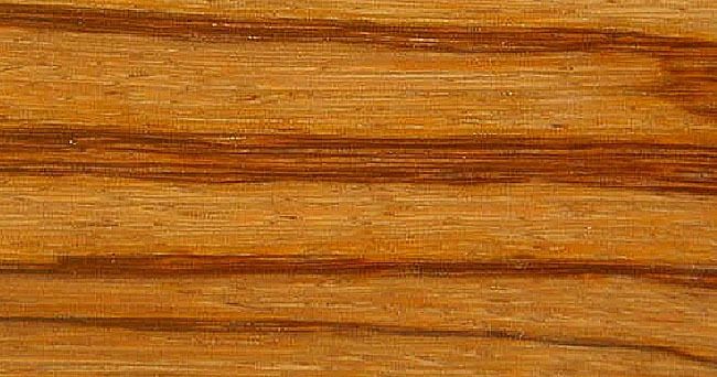 O cerne é amarelo alaranjado com listras mais escuras (às vezes um pouco violáceas), como veios, o que dá à madeira um aspecto muito decorativo. O alburno é fácil de distinguir, pois não possui estes veios. O grão é reto, às vezes entrelaçado. A textura é média grosseira.