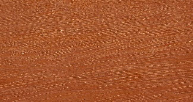 Angelim vermelho serrado fresco tem uma cor marrom avermelhada, escurecendo ligeiramente após a exposição. As linhas mais escuras, paralelas aos anéis de crescimento, são características. O alburno é esbranquiçado. A madeira fresca tem um odor desagradável, que desaparece principalmente com o tempo. O grão é frequentemente curvado e entrelaçado e a textura é média grosseira. Às vezes o Angelim vermelho é confundido com o Angelim pedra / Sapupira. Angelim vermelho tem uma tendência a sanguessuga (extrativos que se dissolvem na água durante a molha).