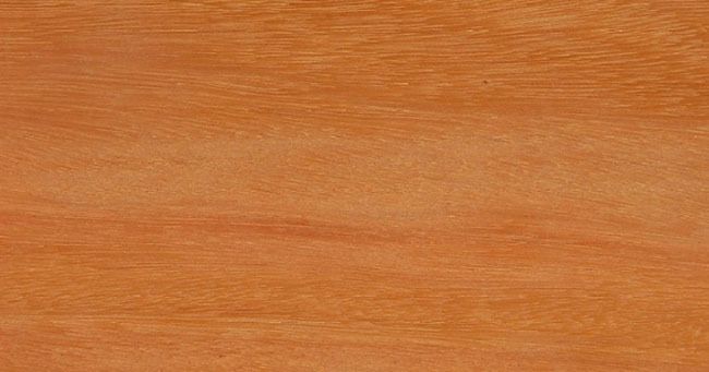 The color of the heartwood varies from orange brown to light pinkish red. Characteristic is the light and very fine stripe pattern. The sapwood has a lighter color and can be distinguished from the heartwood. The taste is more or less bitter. The grain is fairly straight, sometimes with interlocked or irregular grain. The texture is medium fine to fine.